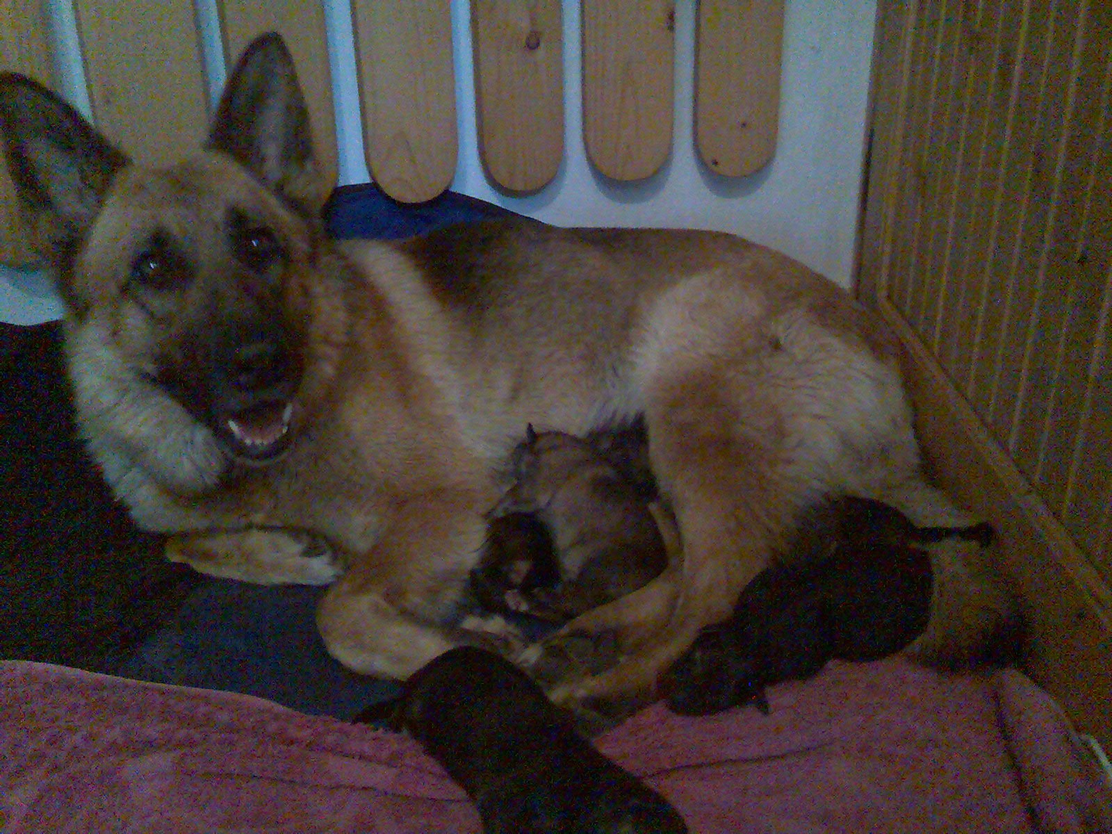 Chara with the puppies