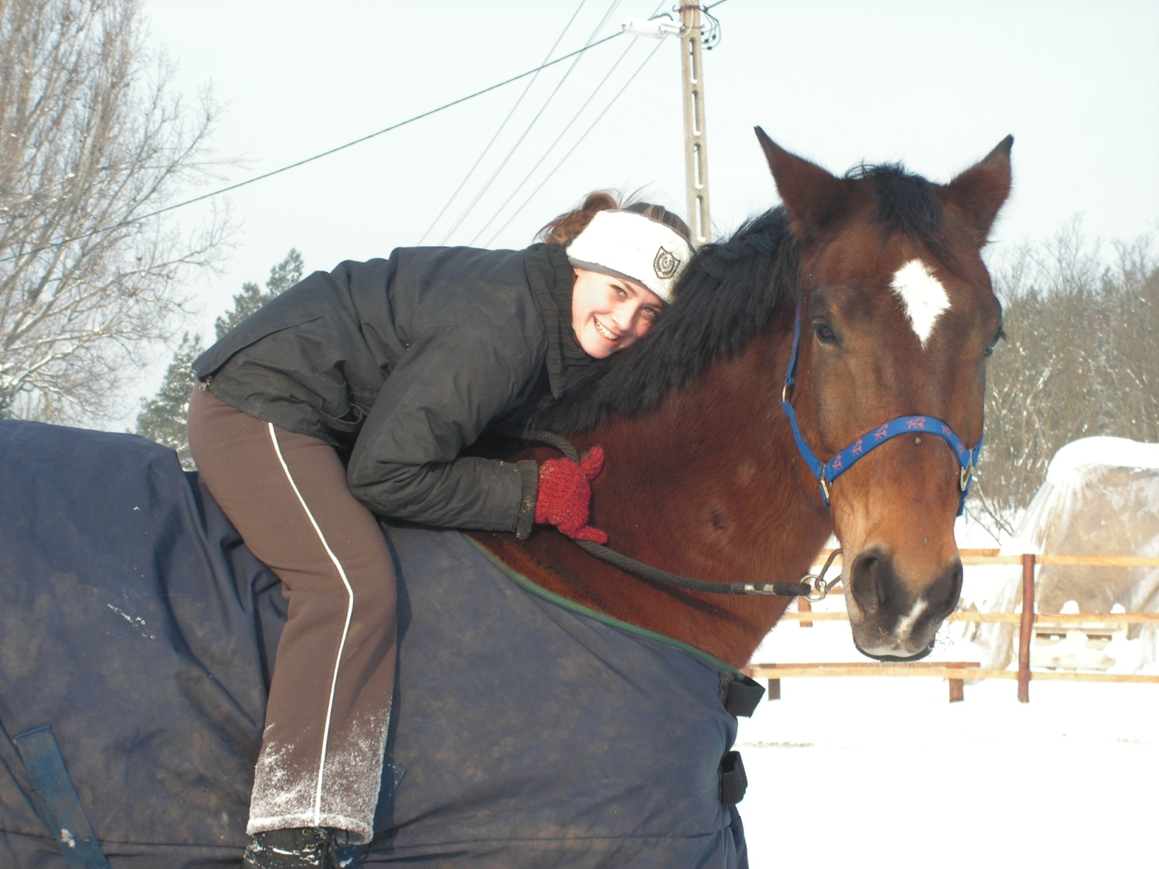 Első lóra ülésem rövid leírása Egy éves koromban már 2 hintalovam is volt, amiket akkor már biztonsággal lovagoltam (nem estem le egyikről se), két éves koromban rendőri felügyelet mellett egy egész nyáron át szőrén sétáltam egy igazi rendőrlovon. Első igazi lovaglásom 6 évesen kezdődött. Gödöllőn a Both tanyán … Györgyi néni felügyelete mellett. Az első lovam, amelyik mély nyomot hagyott benne Minden általam lovagolt lónak külön emlékalbuma van, mindegyik tudott olyan újabb dolgot adni amit a többi nem. Az alapokat, a lovak szeretetét és tiszteletét egy 21 éves kancától Jaltától tanultam. Azóta se találkoztam még ennyire türelmes, a gyerekeket ennyire szerető és tanító lóval. 11 éves koromban találkoztam össze Willyam-el az akkor 4 éves csikóval. Mellette tanultam meg, hogy minden ló önálló egyéniség, akit szeretni tisztelni kell. Mondhatom, hogy vele nőttem fel és ő mellettem lett igazi felnőtt. Mára már szavak nélkül is megértjük egymást. Ismerjük egymás hibáit és erősségeit és bár nem versenyzem vele ő az eddigi legmeghatározóbb ló az életemben Eddigi pályafutásom legkedvesebb lova Mint ahogy nincs legkedvesebb testvérem, így legkedvesebb lovam sincs hisz mindegyiket valami másért szeretem ugyan úgy. 4 olyan ló van, akire mindig jó gondolnom. Ø Willyam: § ő a lovak közül a „legjobb barát”. Ismer, ismerem, szavak nélkül megértjük egymást, bátorít és támogat, ha elakadok. Ő a múltam a jelenem és remélem a jövöm is. Ø Vyli § ő a lovak közül az „első szerelem”. Vele voltak az első emlékezetes versenyeim, vele ismerkedtem meg a versenyek világával. Ő az aki mindig eszembe jut ha a versenyekre gondolok.